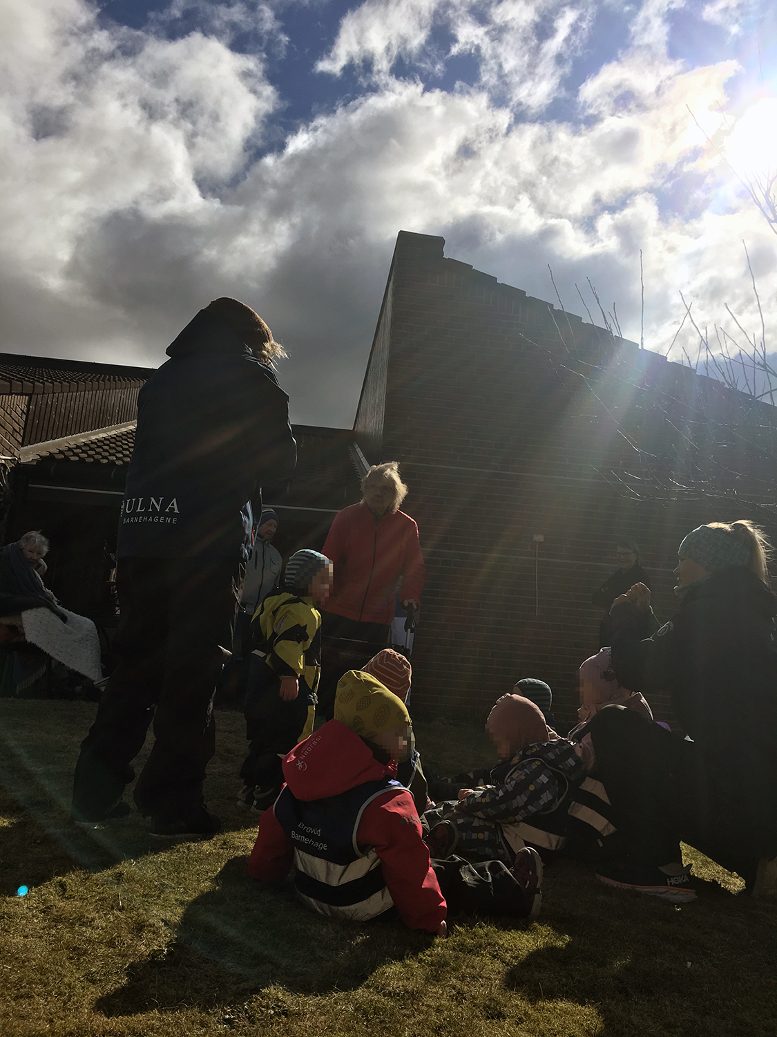 Barna i Brovold barnehage tok fredag med seg matpakke til Løten helsetun. De underholdt beboerne med sang og liv i hagen. Mange fine øyeblikk inn mot helgen.