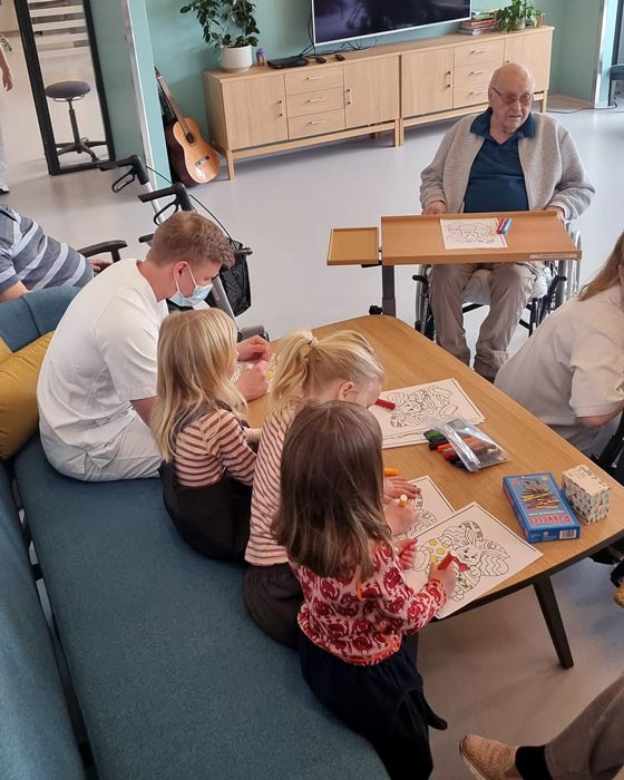 Mandag formiddag tok barna i Hernes barnehage turen til Helsehuset Elverum for å tilbringe tiden med beboere. Vel fremme sang de sanger med vårtema for de ivrige lytterne, og sammen malte de påskeegg.