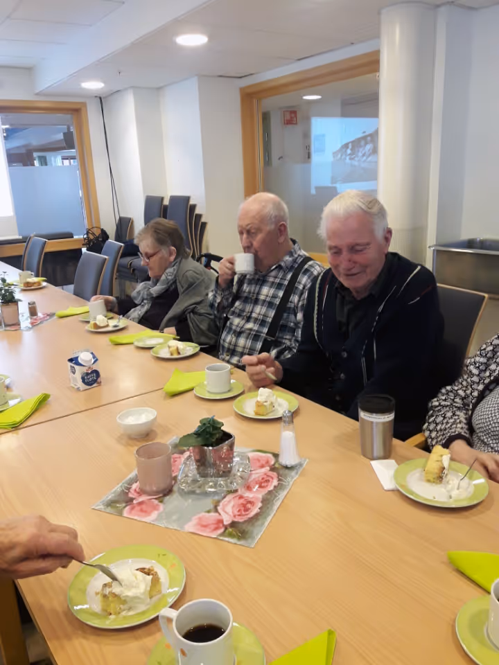 Beboerne fra omsorgsboligene på Linåkertunet koste seg på lørdag da Hans Tore og Gudveig fra bildegruppa i Ringebu historielag viste bilder "fra livet på setra».