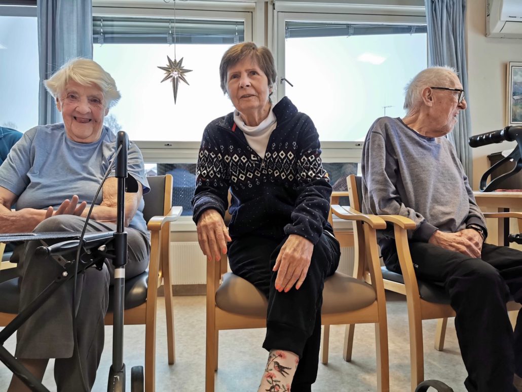 Både store og små hadde en hyggelig stund med sang og samvær da Grettegutua barnehage mandag kom på besøk til 2. etasje på Hovli sykehjem og eldresenter.