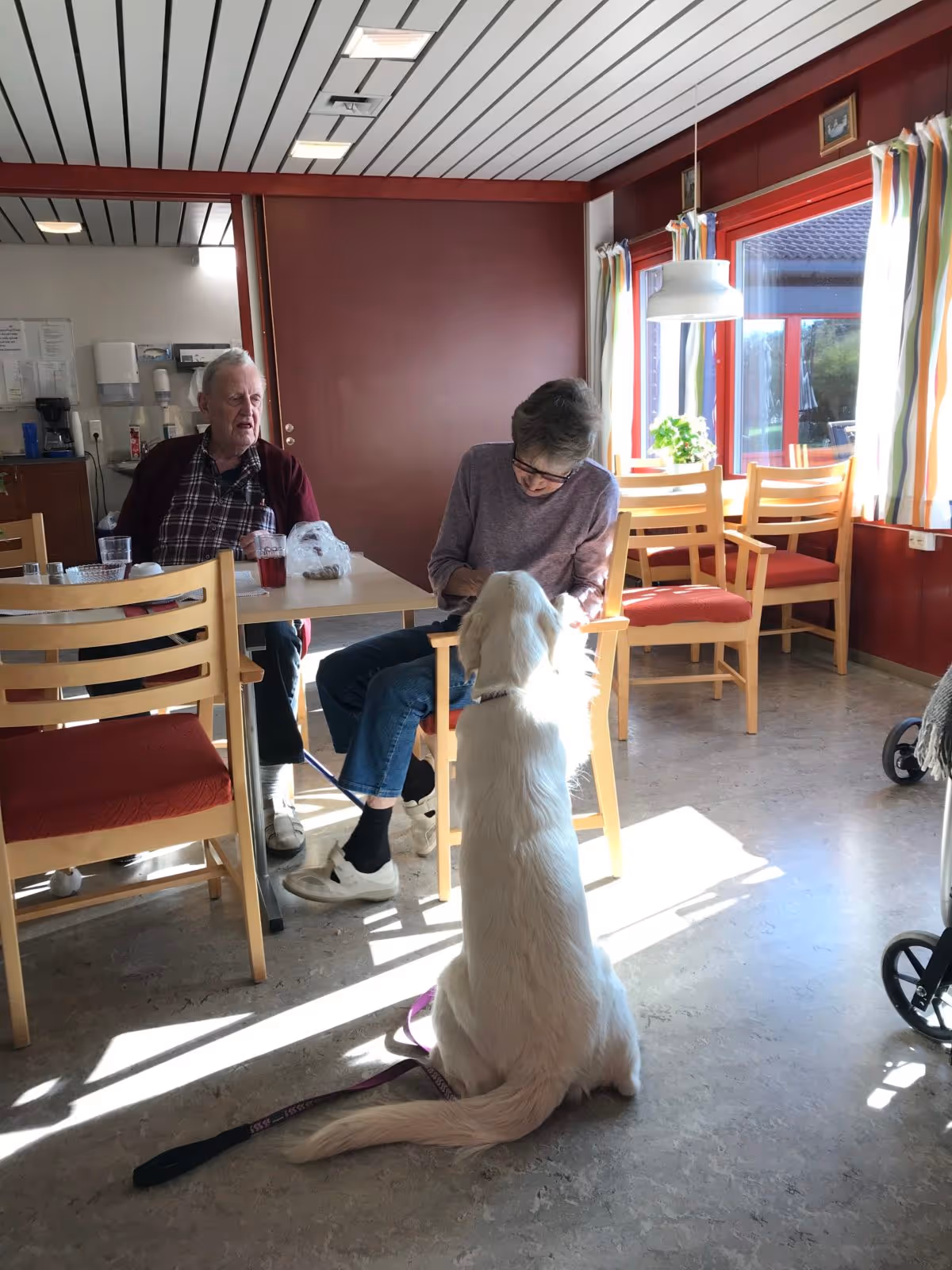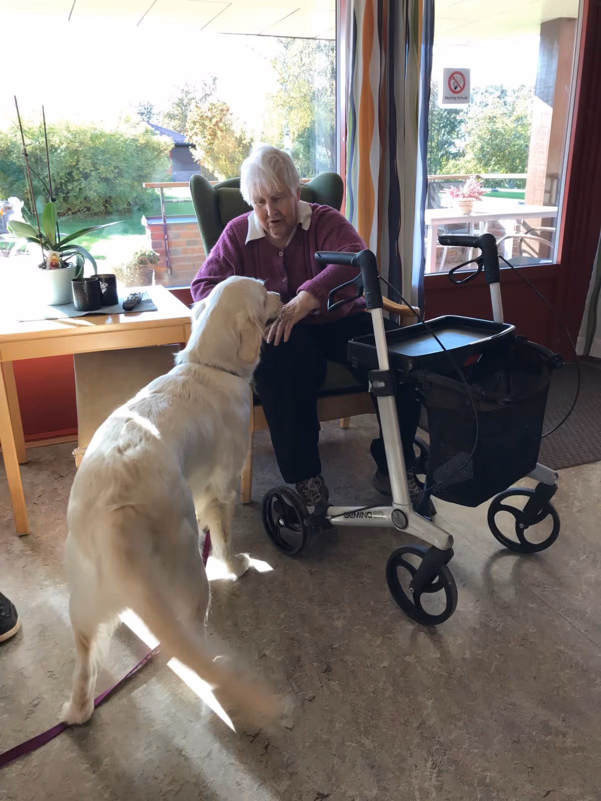 Fryd på 1 år løp ivrig mellom alle som ønsket å hilse på henne når hun og matmor Hege Palerud Steen tirsdag ble godt kjent med beboerne på Post 1 på Løten Helsetun.