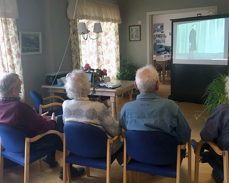 "Dette syns jeg var moro å se igjen!» sa en av brukerne på Soltun da vi på tirsdag viste gamle revyklipp av Leif Juster, Einar Rose, Arve Opsahl og Wenche Myhre på storskjem. Det ble en hyggelig stund med mimring og allsang til de kjente klassikerne.