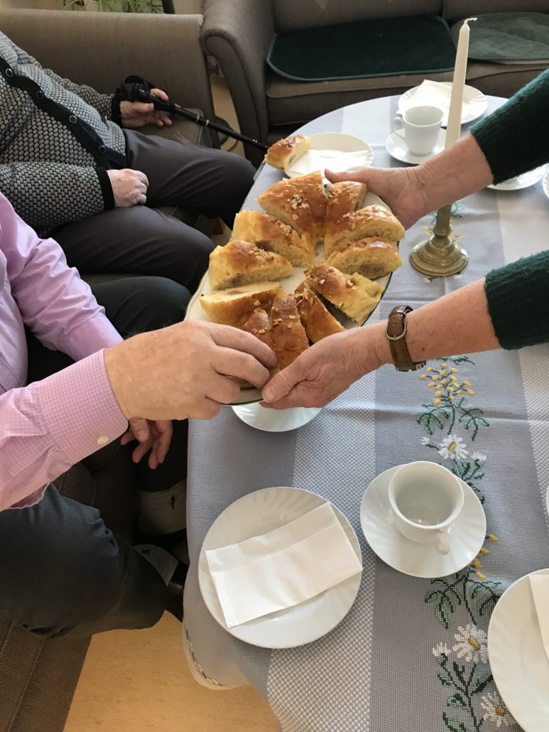 Flott av Wenche Johansen og Haldis Skjærstad fra Løten Pensjonistforening som torsdag gledet alle på Post 3 Løten Helsetun med hjemmebakt kringle til formiddagskaffen.