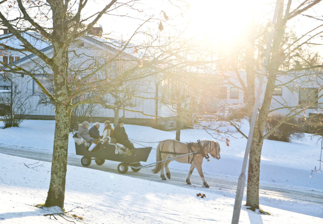 Stas og mimring da Morten Hansen og hesten Askeladden fra Åsli hestesenter på onsdag kjørte flere runder med beboere fra Tømmerli- og Brumunddal bo- og aktivitetssenter.