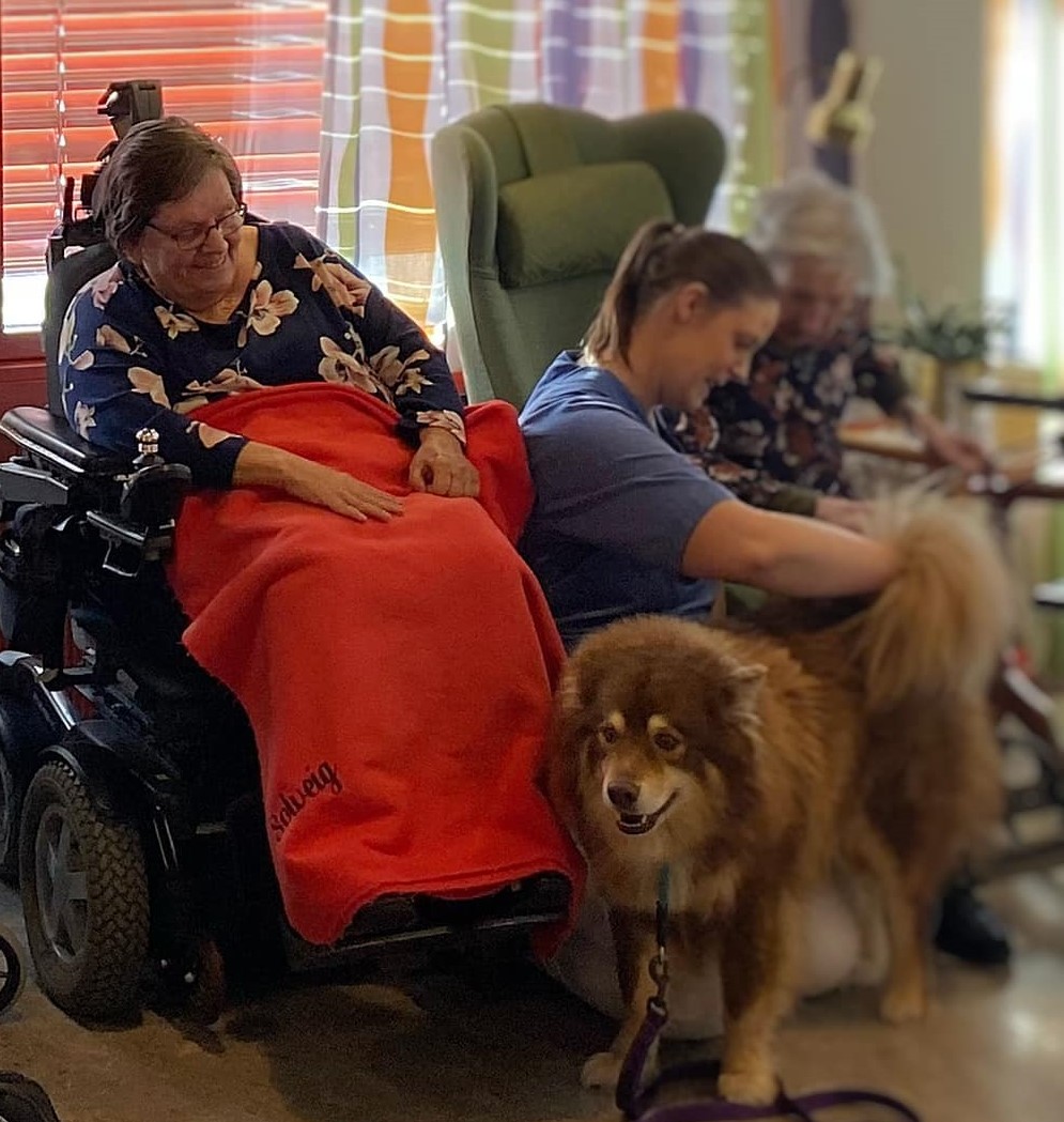 Tusen takk til Janne Christin Holmberg som tok med seg de sjarmerende hundene sine på Løten helsetun på torsdag. Beboerne strålte av glede da de lodne og kosete hundene kom bort for å få kos. Et rørende møte mellom dyr og mennesker!