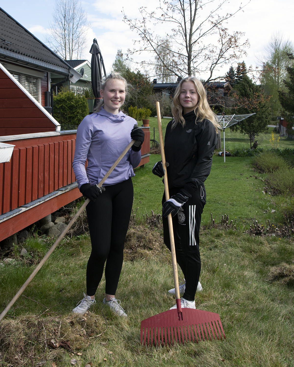 Knut og Elin Paalsrud fikk i tirsdag frisket opp i hagen takket være ungdommene Kaja og Eva. Ekteparet kontakter ungdommer på vilmer.no for praktiske oppdrag og ungdommene får muligheten til å tjene penger. Dette er et pilotprosjekt i samarbeid med Ringsaker kommune.