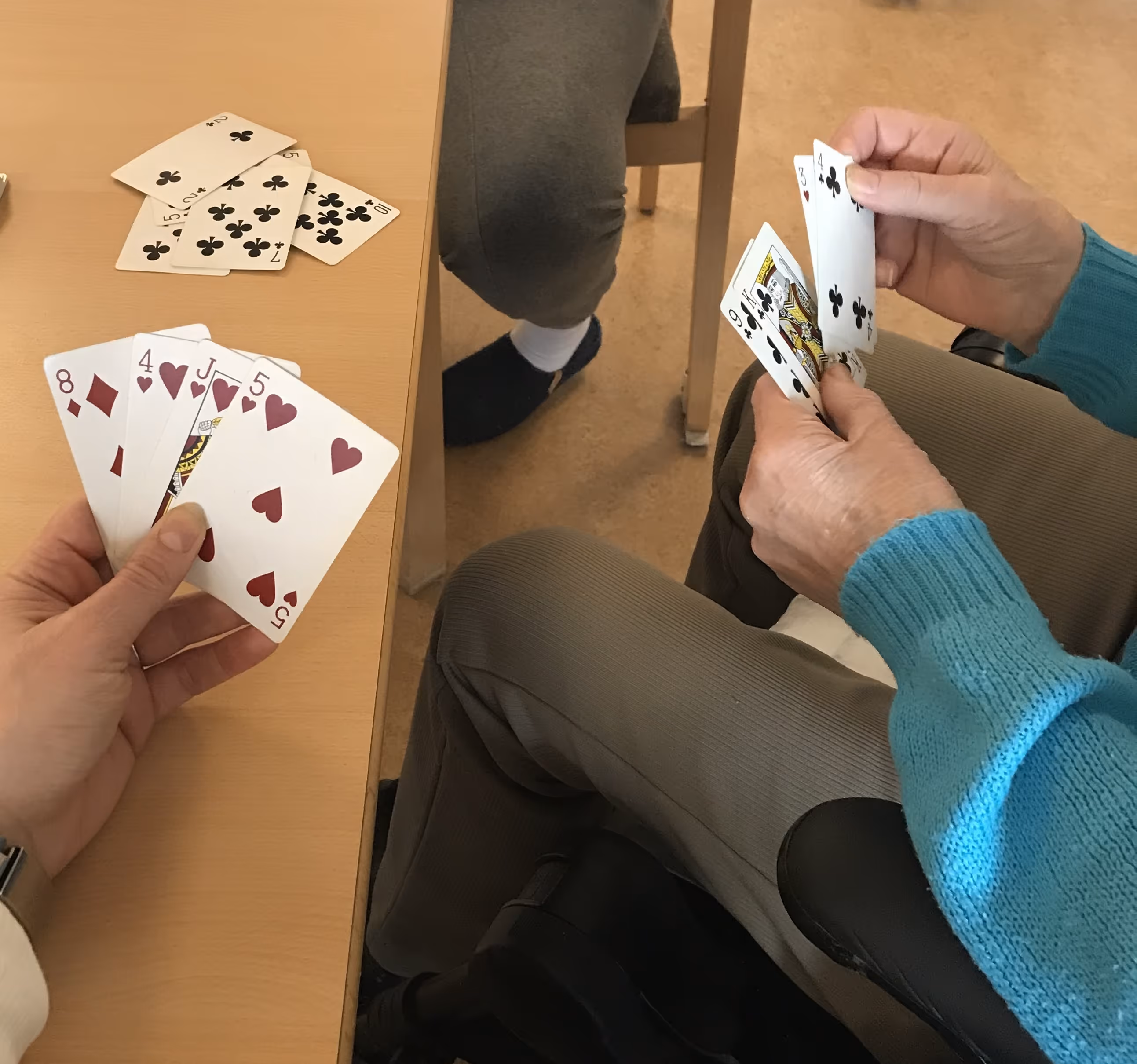 «Åh, vi spilte mye kort før i tida. Da kom ungdomma innom og så spilte vi kort ved kjøkkenbordet», sier en beboer.