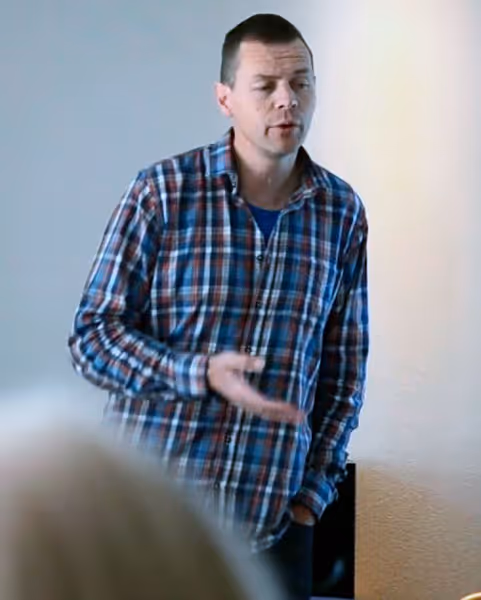 "Live" nyhetssending på Ringsaker bo- og aktivitetssenter! Publikum lyttet engasjert når Gaute Freng presenterte aktuelle nyheter og fortalte om endringene Ringsaker Blad har vært gjennom de siste årene.
