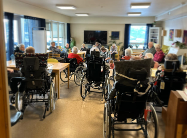 "Onsdag hadde avdeling C3 besøk av Lundgårdsløkka barnehage. Det var sang og mye latter til glede for beboerne og de ansatte. Barna tegnet også til beboerne. Det er alltid like stas med besøk av de", skriver en ansatt på Facebook-siden Lillehammer helsehus.