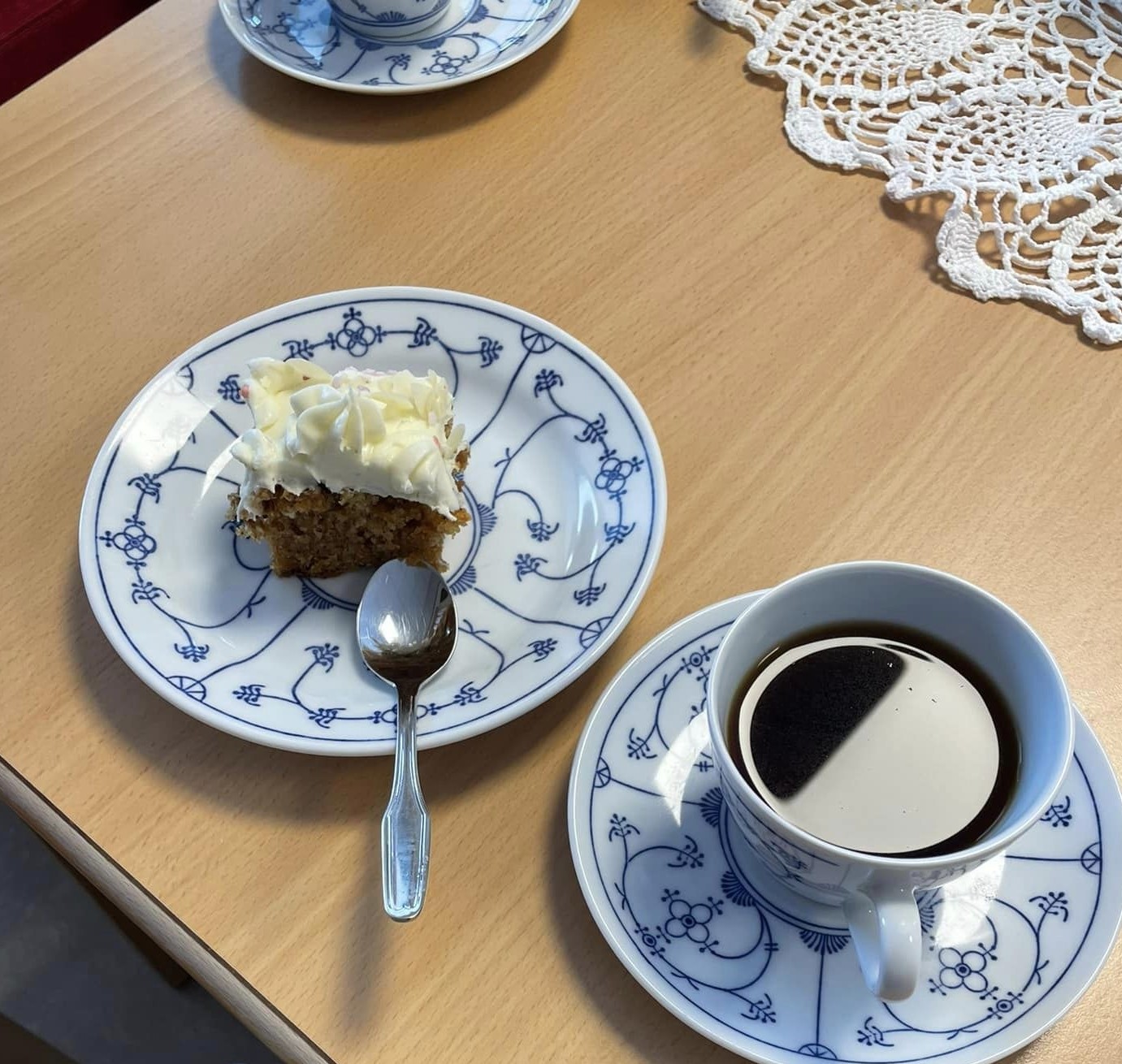 "De heldige beboerne på Bokollektivene i Åslundmarka fikk deilig gulrotkake til ettermiddagskaffen. Som alltid er det den snille Mona Vandraas som har bakt til oss. Hun hadde også med en stor konfekteske gitt av Norengros Johs Olsen. Tusen takk", skriver en ansatt i Facebook-gruppa Gode øyeblikk i eldreomsorgen i Gjøvik.
