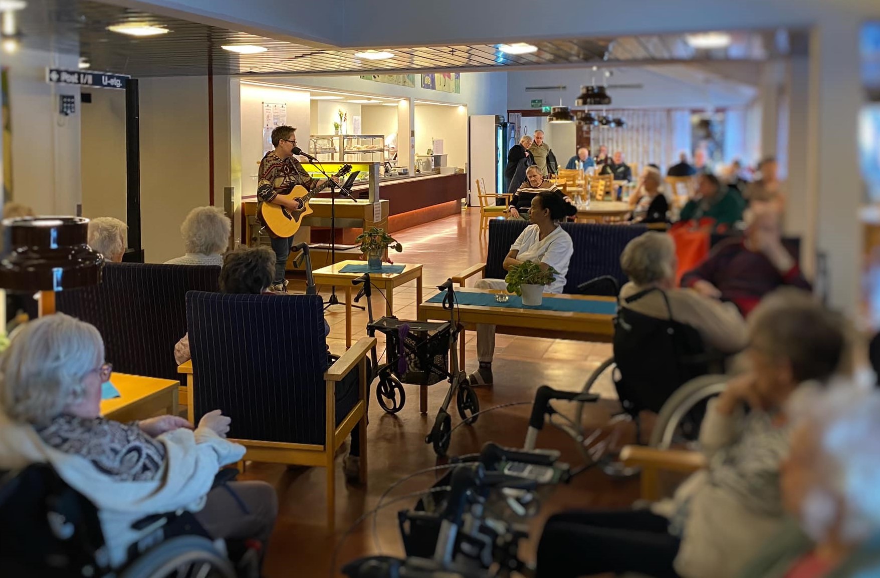 "Idag spilte og sang Mone Evensen for alle avdelinger på Helsetunet. Takk for ei fin stund", skriver en ansatt i Facebook-gruppa VilMer Løten.