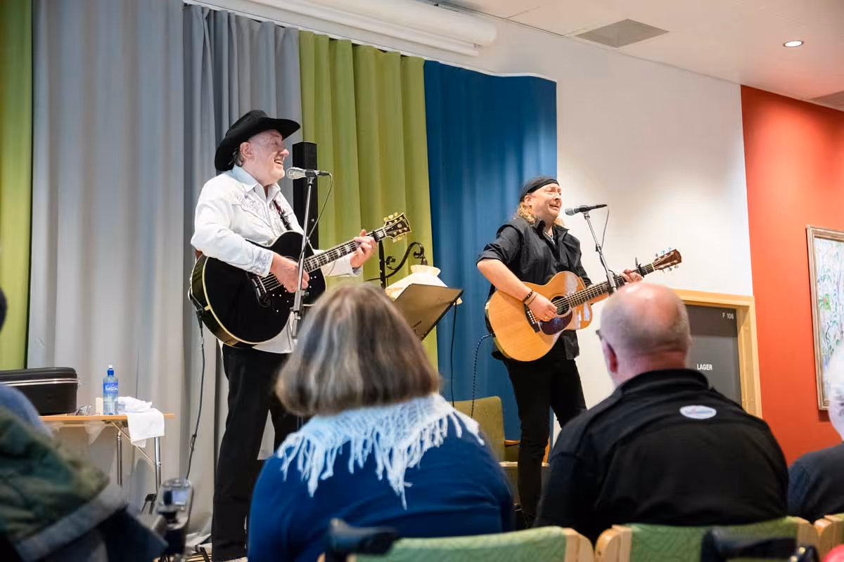 Det ble både dans og allsang for full hals på torsdag da country-legenden Ottar "Big Hand" Johansen holdt konsert på Lillehammer helsehus. Alle fra byens bo- og servicesentre var invitert, og det ble en fullsatt sal med 225 beboere. En vellykket konsert med en fantastisk stemning!