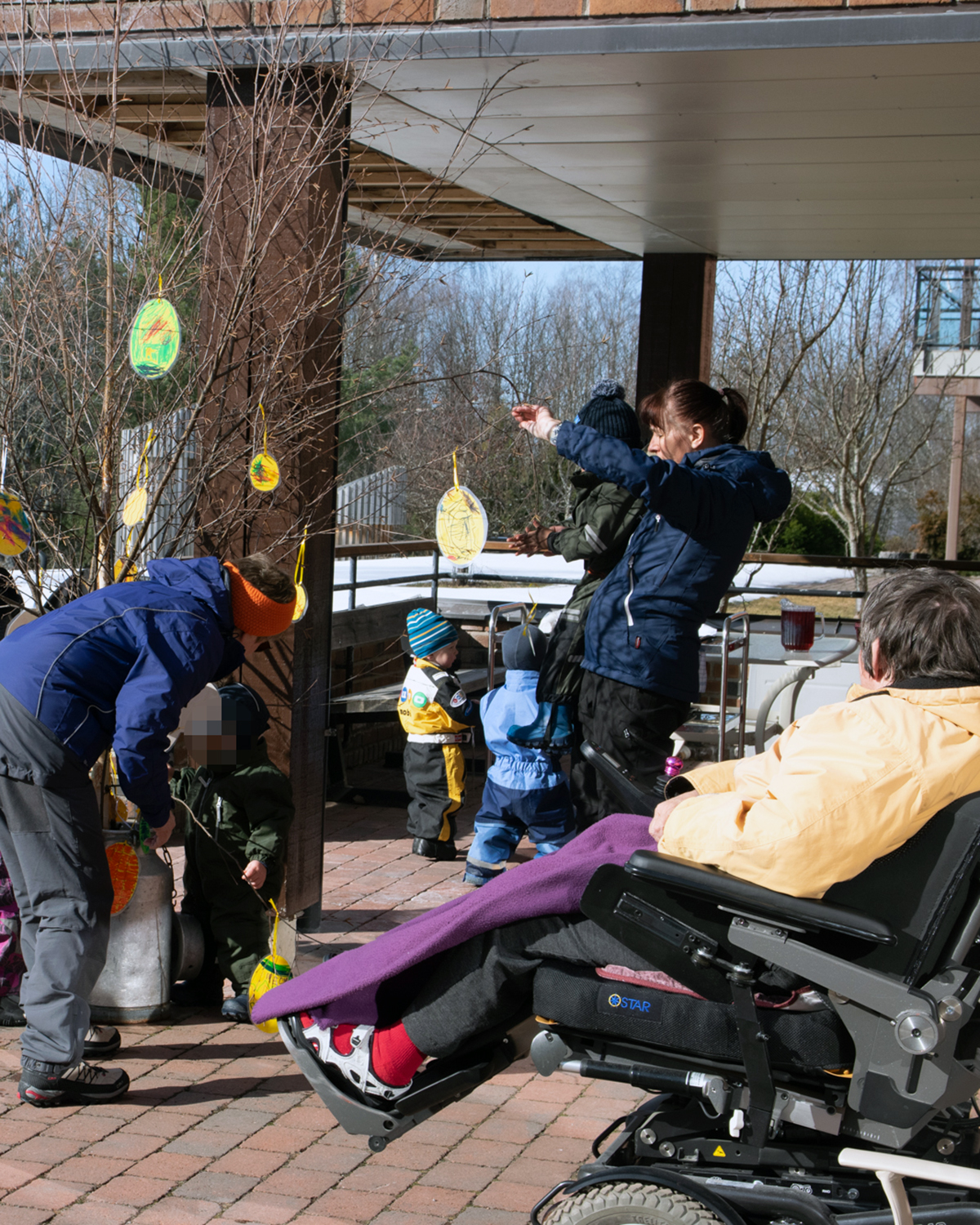 Ryli barnehage hadde påskeverksted før de kom på besøk til Løten helsetun for å pynte "generasjonstreet". Selv om de fleste beboerne fulgte med fra innsiden, kunne avdelingsleder Mina fortelle at et besøk som dette virkelig er betydningsfullt for dem alle. — Bare det å høre barna le gjør mye.