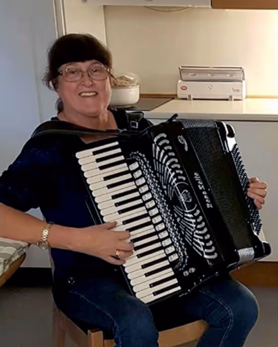 "Full fart på dansegulvet. Beboerne lyste opp da de fikk høre gamle og kjente melodier, og beina gikk mer eller mindre i takt både på dansegulvet og under bordene til de som ikke danset. En koselig stund sammen et veldig takknemlig publikum", forteller Eva etter at ekteparet hadde spilt for beboerne på Brumunddal bo- og aktivitetssenter.
