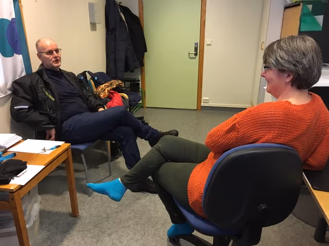 I dag var første møte mellom Amund Solberg, som vil bidra med snekkerverksted og praktiske opplevelser for gamlekara, og aktivitør Trine Børke på Tømmerli, som gjerne ønsker hjelp til dagaktiviteter for de mannlige brukerne.