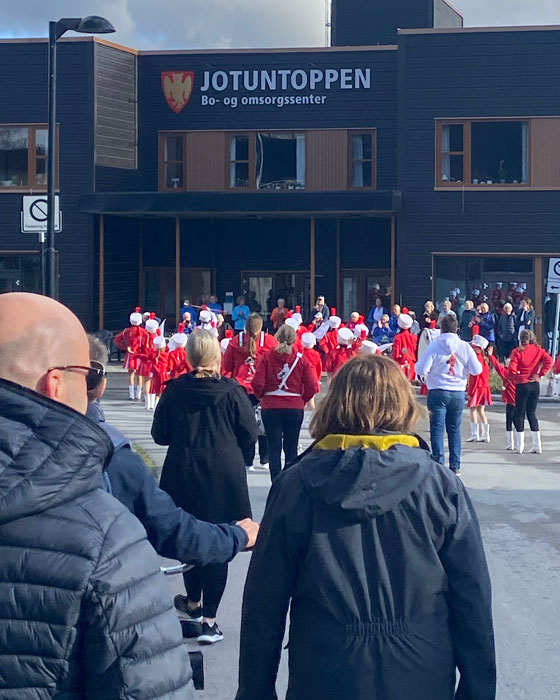 Drilloppvisning, trommer og nasjonalsangen - som vi alle er så glade i 🇳🇴🎶 Elverum drill- og trommetropp hadde en storslått oppvisning for beboerne utenfor Jotuntoppen bo- og omsorgssenter, før turen gikk videre til Grønlivegen bofellesskap.