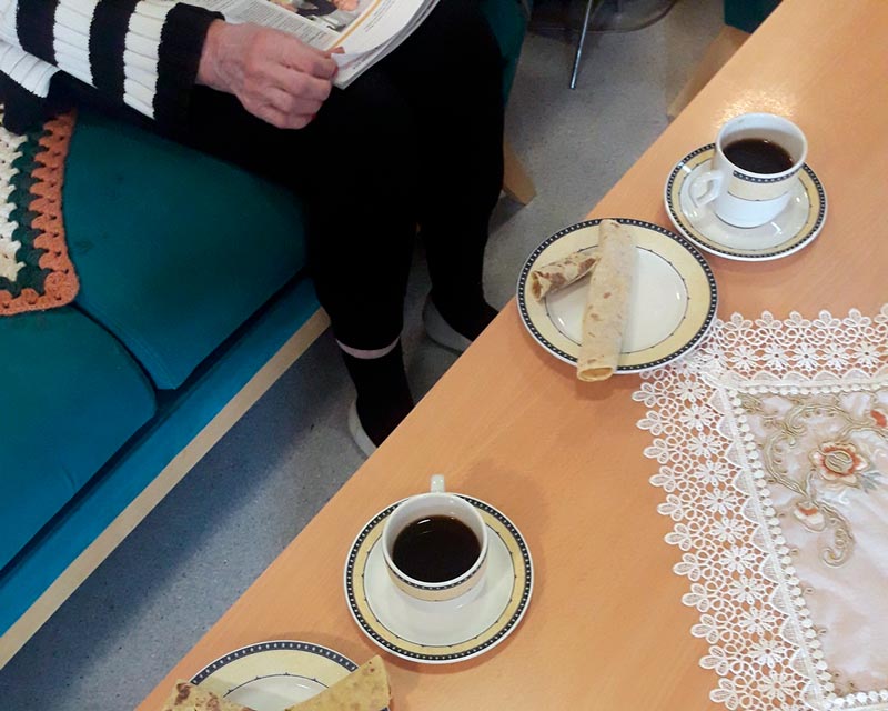 For fjerde gang gledet lokalbedriften Engers Lefsebakeri beboere på omsorgsinstitusjoner i Gjøvik. Tirsdag var det Bjørkelia bokollektiv sin tur til å få rykende ferske lefser som de kunne kose seg med til kaffen og avisen.