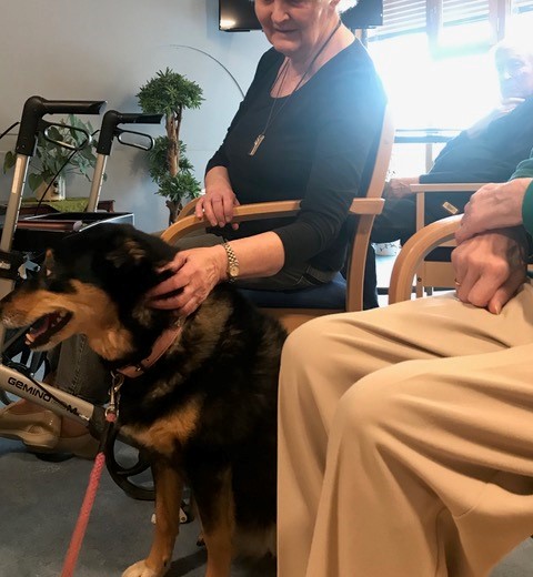 Gunn-Rikke svarte raskt ja da den første henvendelsen gjennom VilMer kom, og mandag kveld var de på sitt første besøk på Nes bo- og aktivitetssenter. Nuna er 13 år gammel, og er spesielt glad i eldre mennesker, så det ble et veldig hyggelig besøk.