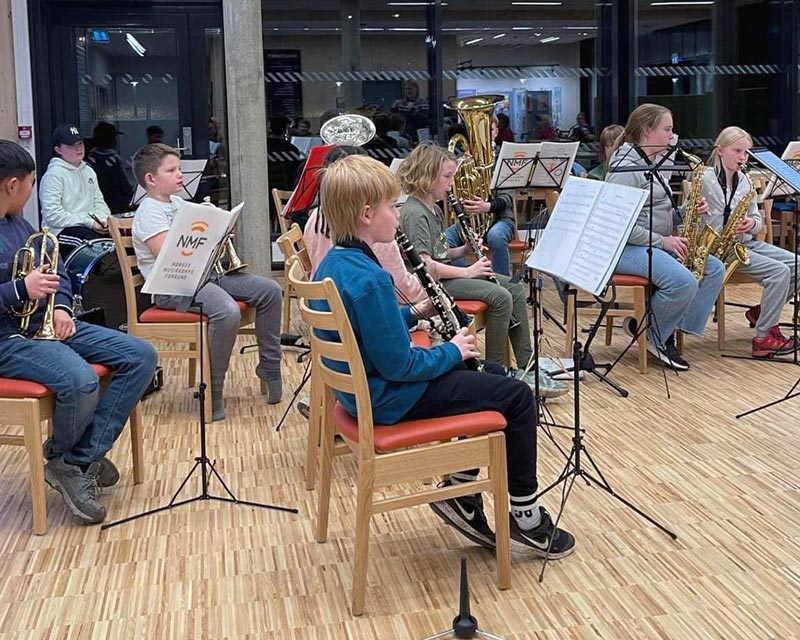 Innimellom flytter Søndre Land Skolekorp øvelsene sine til fellesområdet på Hovlitunet. På tirsdag samlet mange beboere seg rundt barna som øvde sammen.