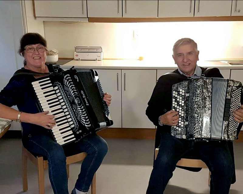 Stor takk til trekkspillduoen som nå mange ganger har spilt kjente og kjære sanger for beboere og brukere på hjem og institusjoner i Ringsaker.