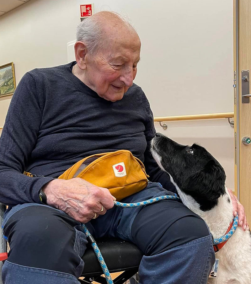 "Koselig besøk av hund. På fredag hadde Rognlia besøk av Thea Megens og hennes to fine hunder. Hundene var rolige, sosiale , tillitsfulle og generelt fine besøkshunder. Dette ble et hyggelig fredagsbesøk for oss på Rognlia. Besøk av hund er alltid like populært", skriver en ansatt i Facebook-gruppa Gode øyeblikk i eldreomsorgen i Søndre Land.
